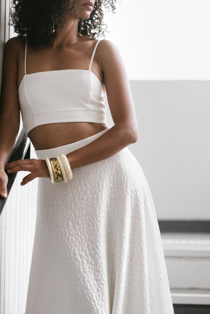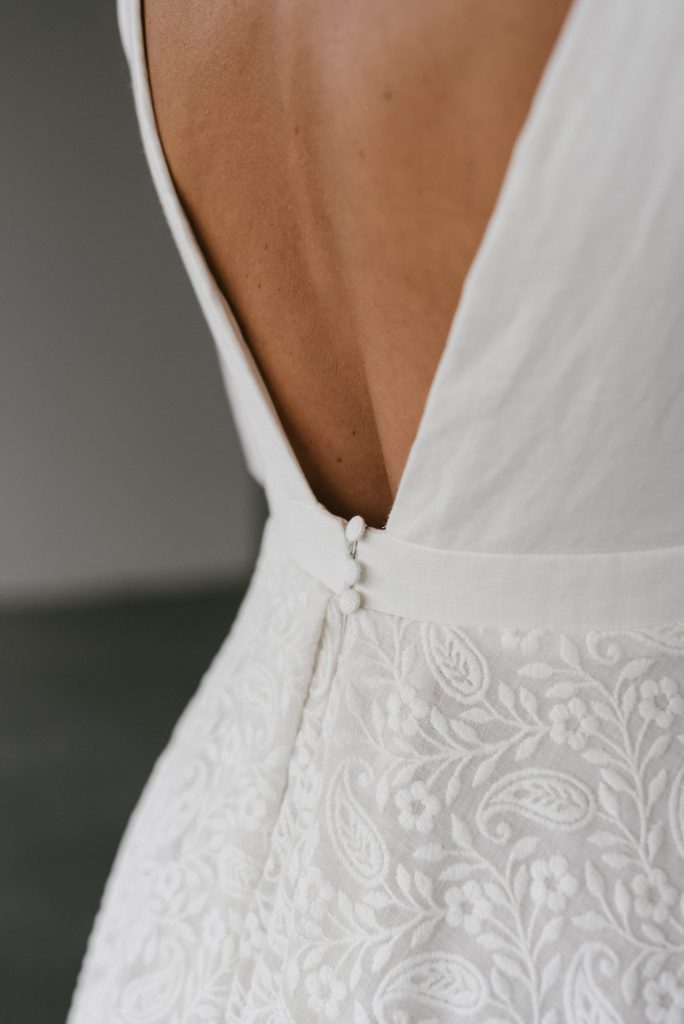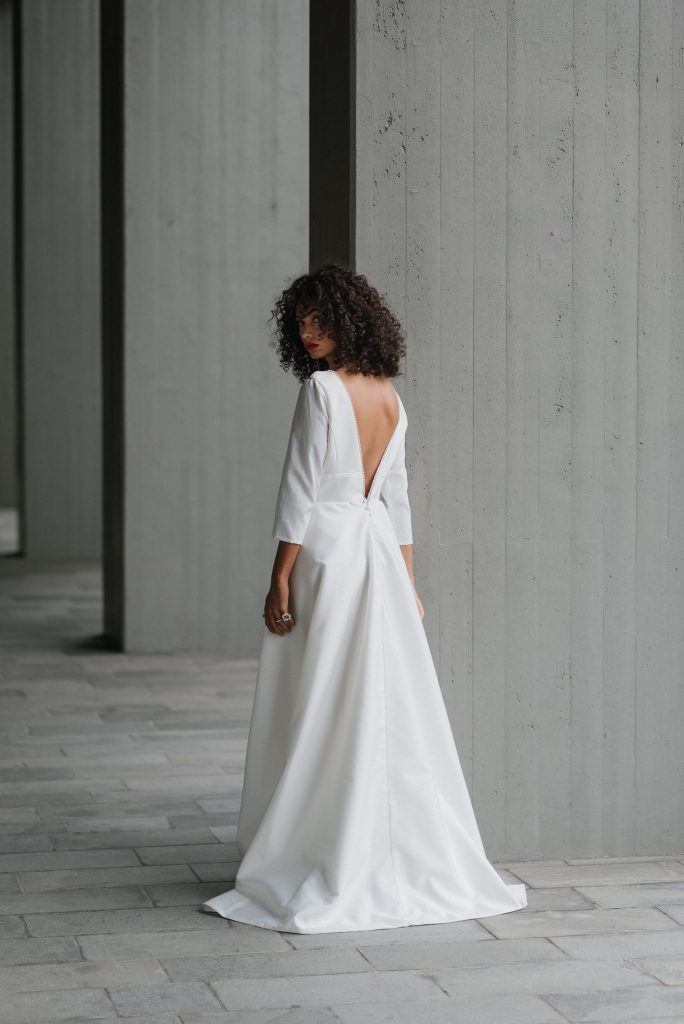 Pour cette nouvelle collection, la simplicité, les matières atypiques et les lignes fortes ont été le fil conducteur des créations Clémentine Iacono. Cette dernière accentue son côté minimaliste avec un travail de coupe et de structure afin de sublimer la femme. A travers ces différents modèles, Clémentine a la volonté de proposer des robes qui s’adaptent à toutes les femmes, à tous les âges et toutes les morphologies et ainsi exposer l’infini des possibilités du sur mesure.