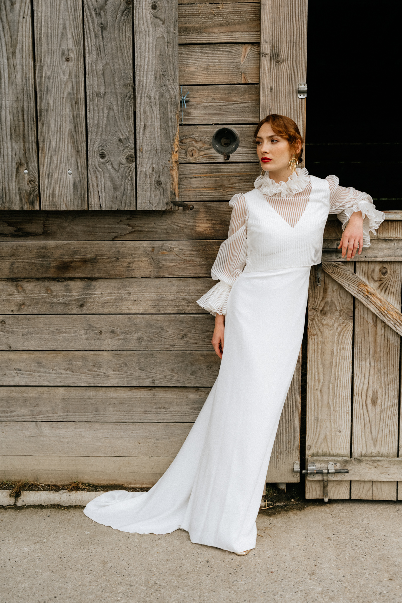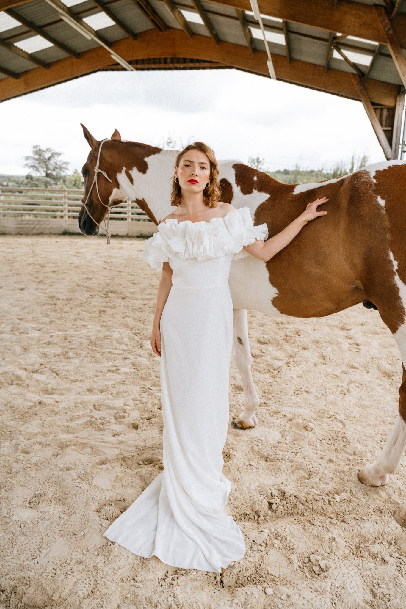 La collection AMAZONES réinvente la mariée moderne en s’inspirant des guerrières mythiques. Elle célèbre une féminité libre, affirmée, et une élégance indomptée qui s’exprime dans chaque détail.