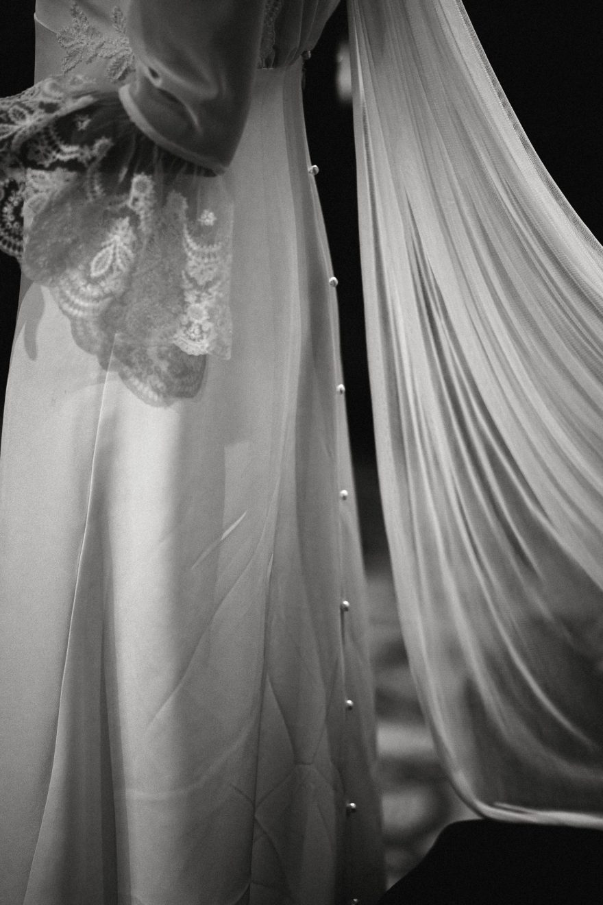 Clémentine Iacono crée des robes sur-mesure, des robes qui ont une gueule et une personnalité. Modèle plus-size, mini robe sixties, allure de conquérante ou dégaine féminin-masculin, la créatrice souhaite plus que jamais prouver qu’une mariée n’est pas forcément une jeune fille en fleurs bercée de romantisme, mais surtout une femme avec les deux pieds ancrés dans son siècle. Les coupes franches et les tombés millimétrés sont ainsi le fil rouge de ses créations qui viennent compléter des associations de tissus inattendues.