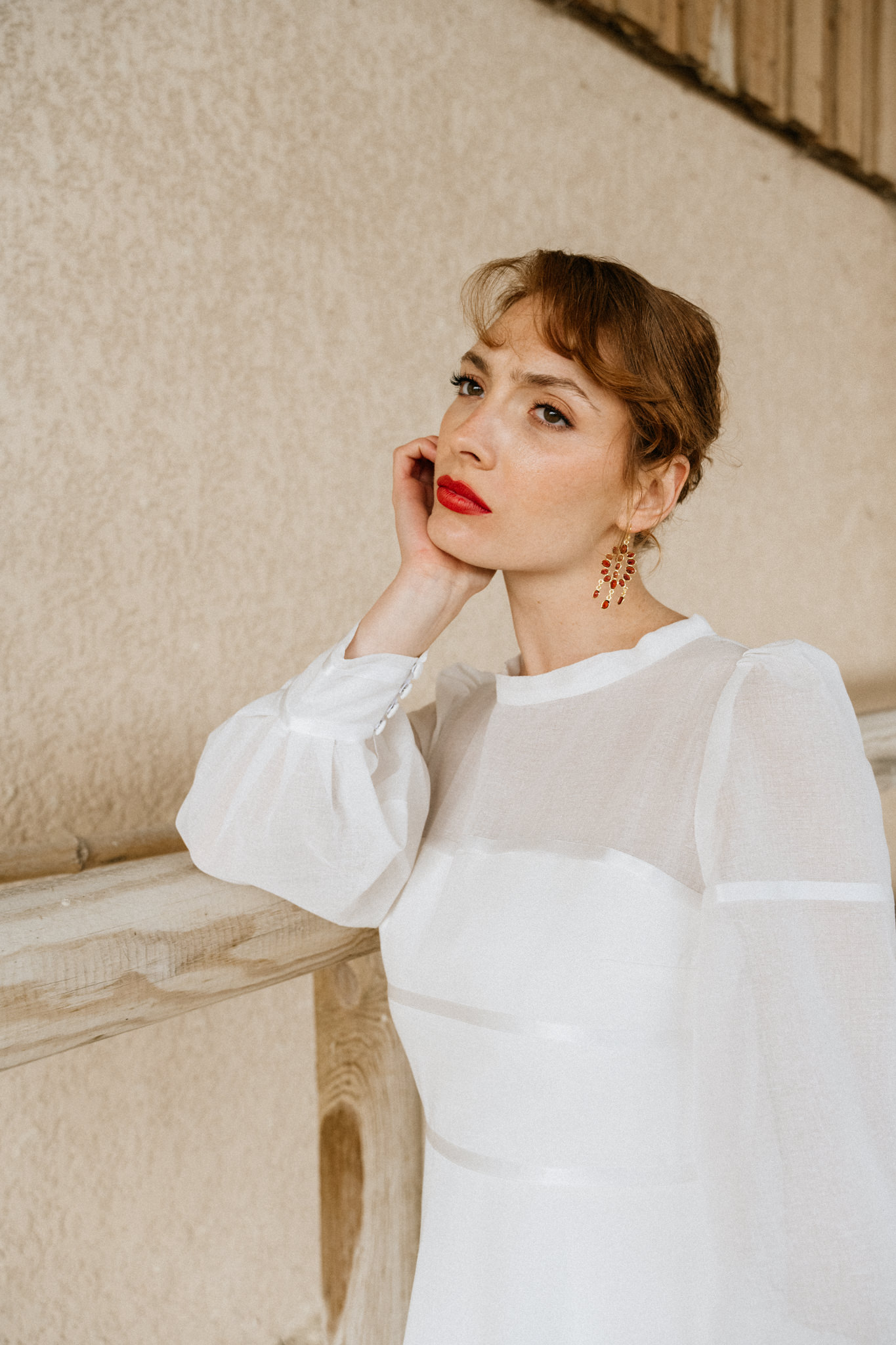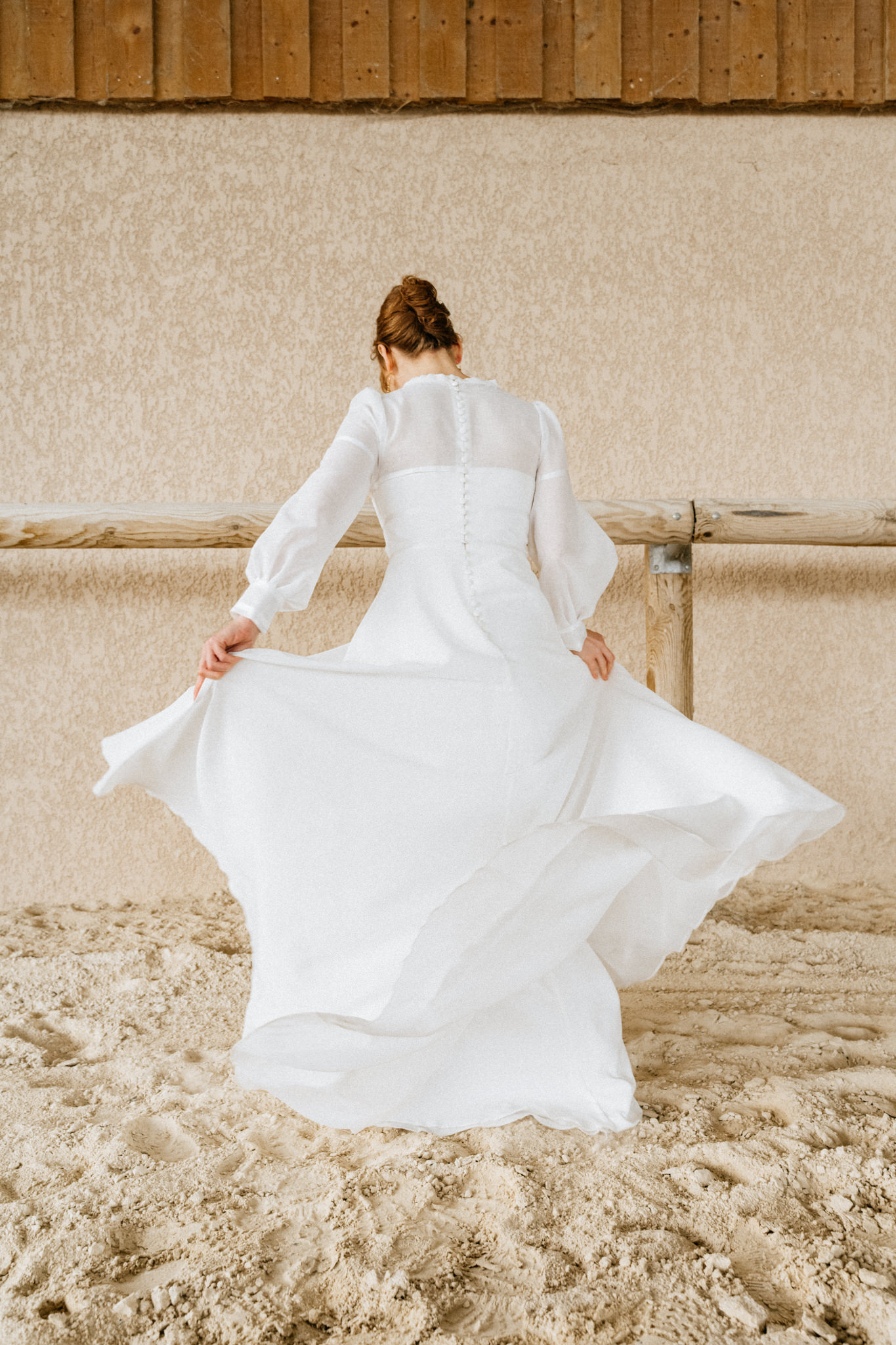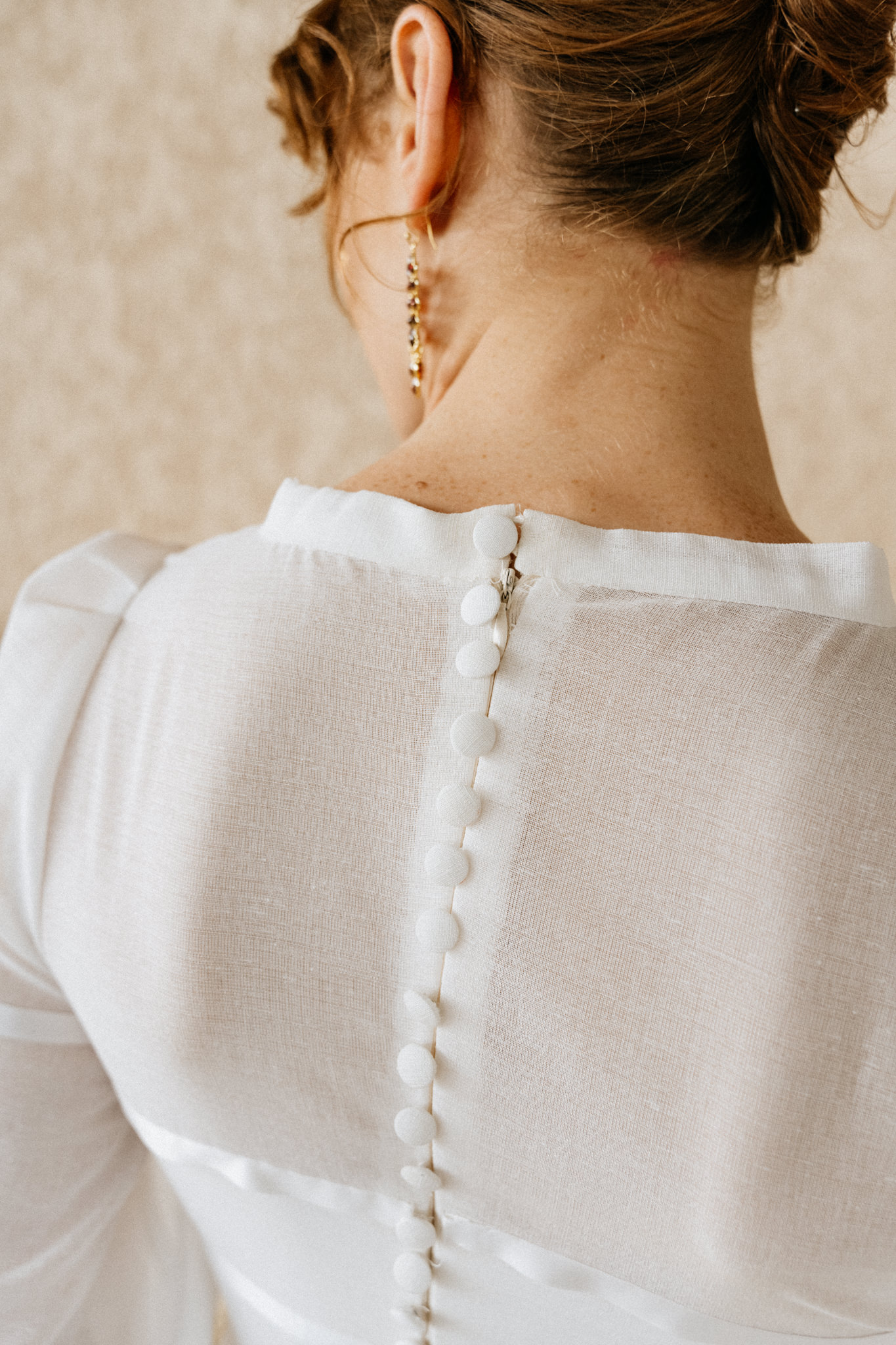 Du volume, de la transparence, une multitude de boutons...Une robe qui dégage à la fois force et douceur pour des femmes sensibles et affirmées.