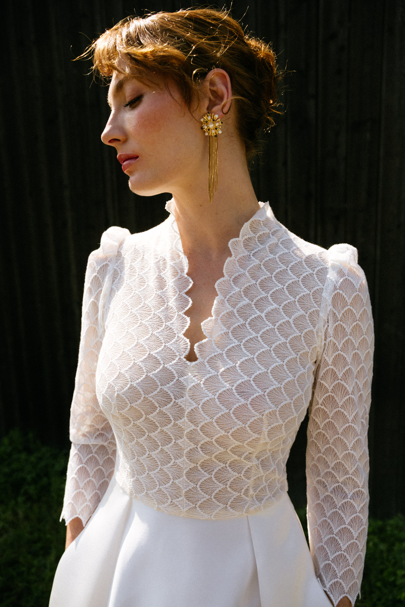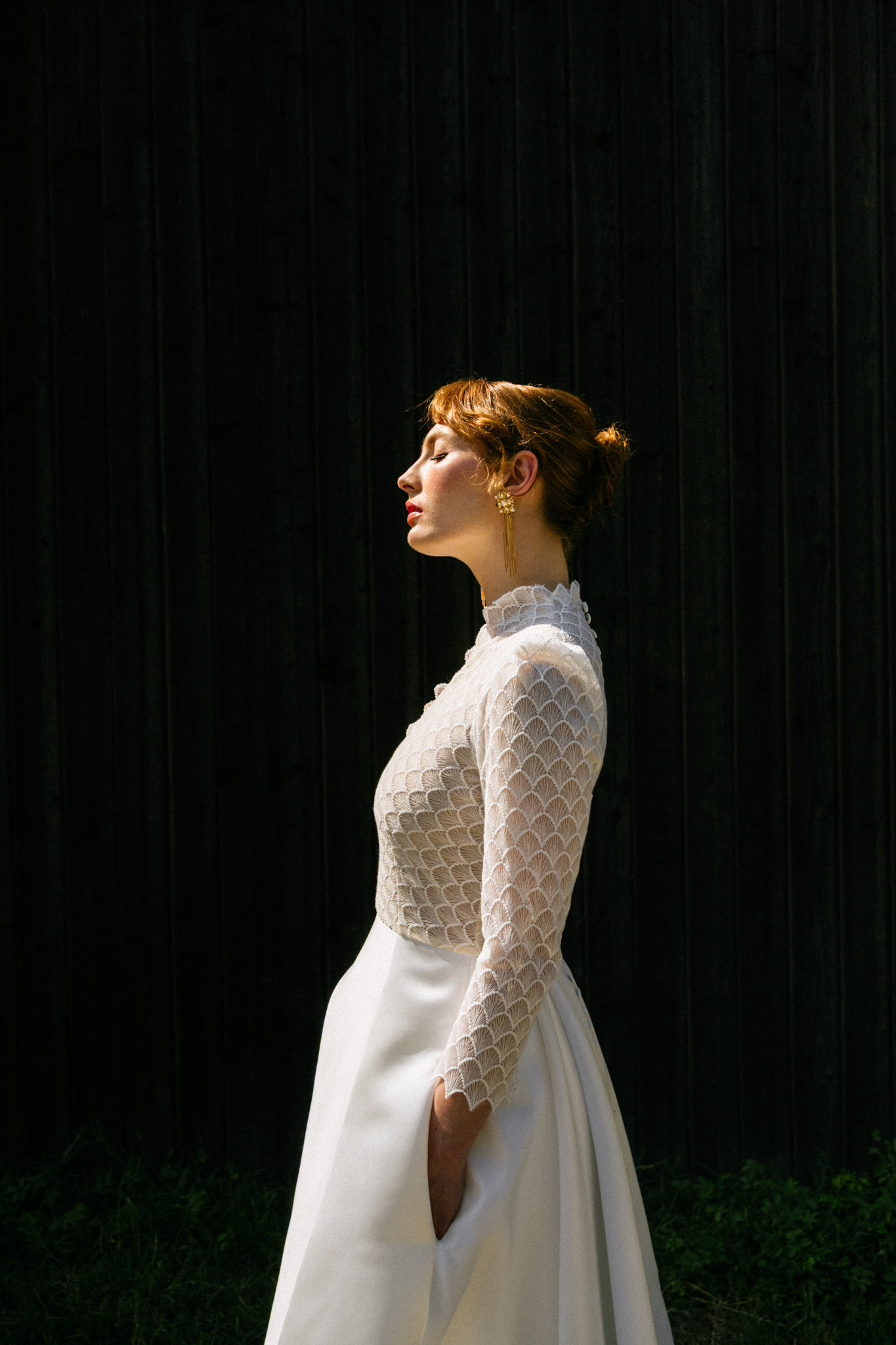 Une silhouette classique avec un profond décolleté et des poche pour une allure contemporaine, majestueuse et souveraine.