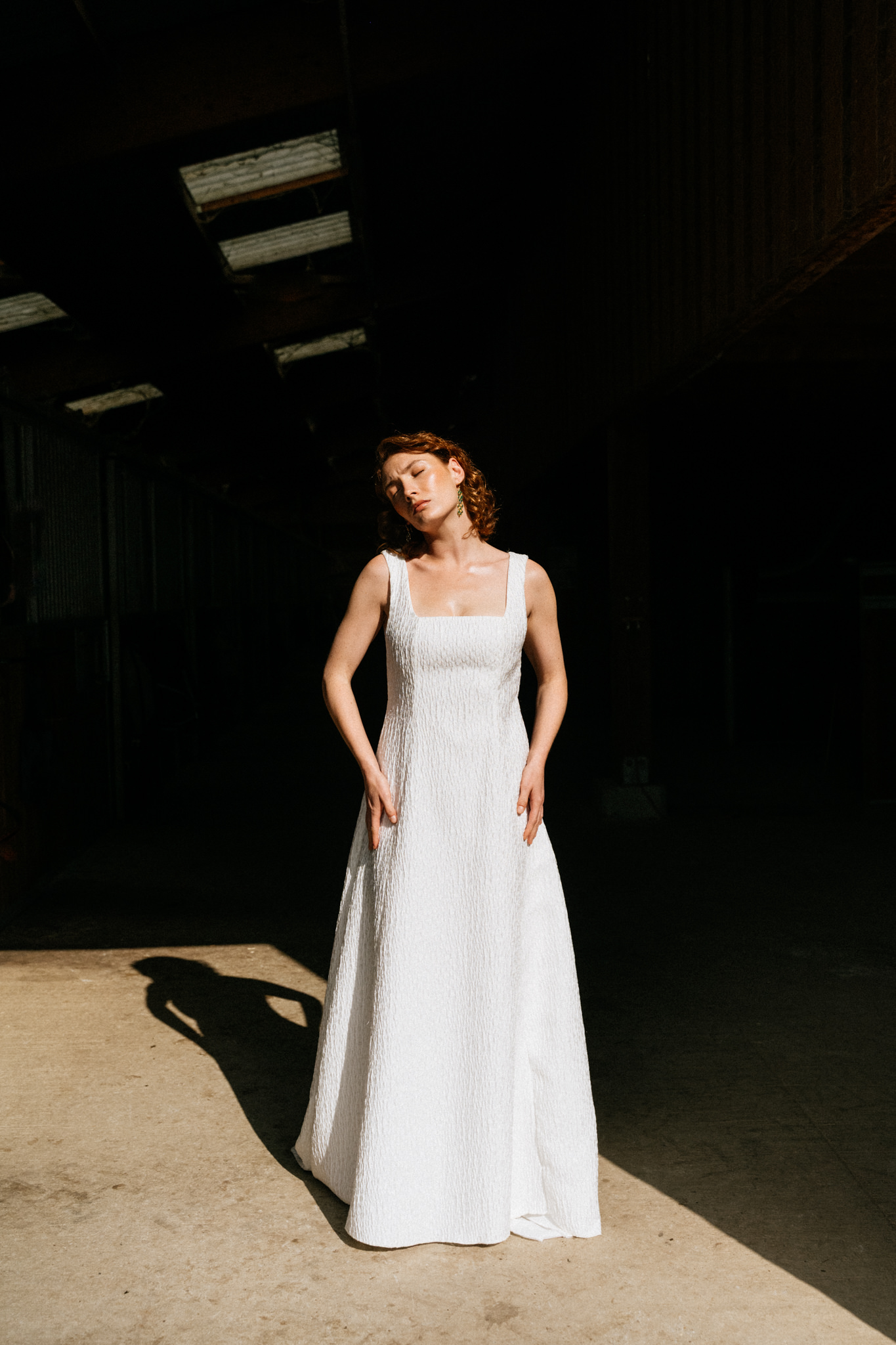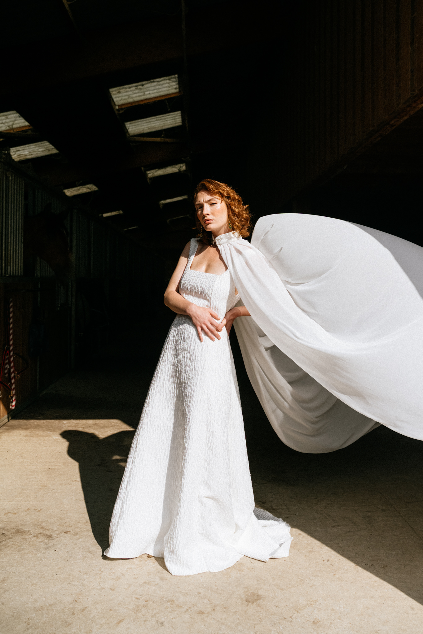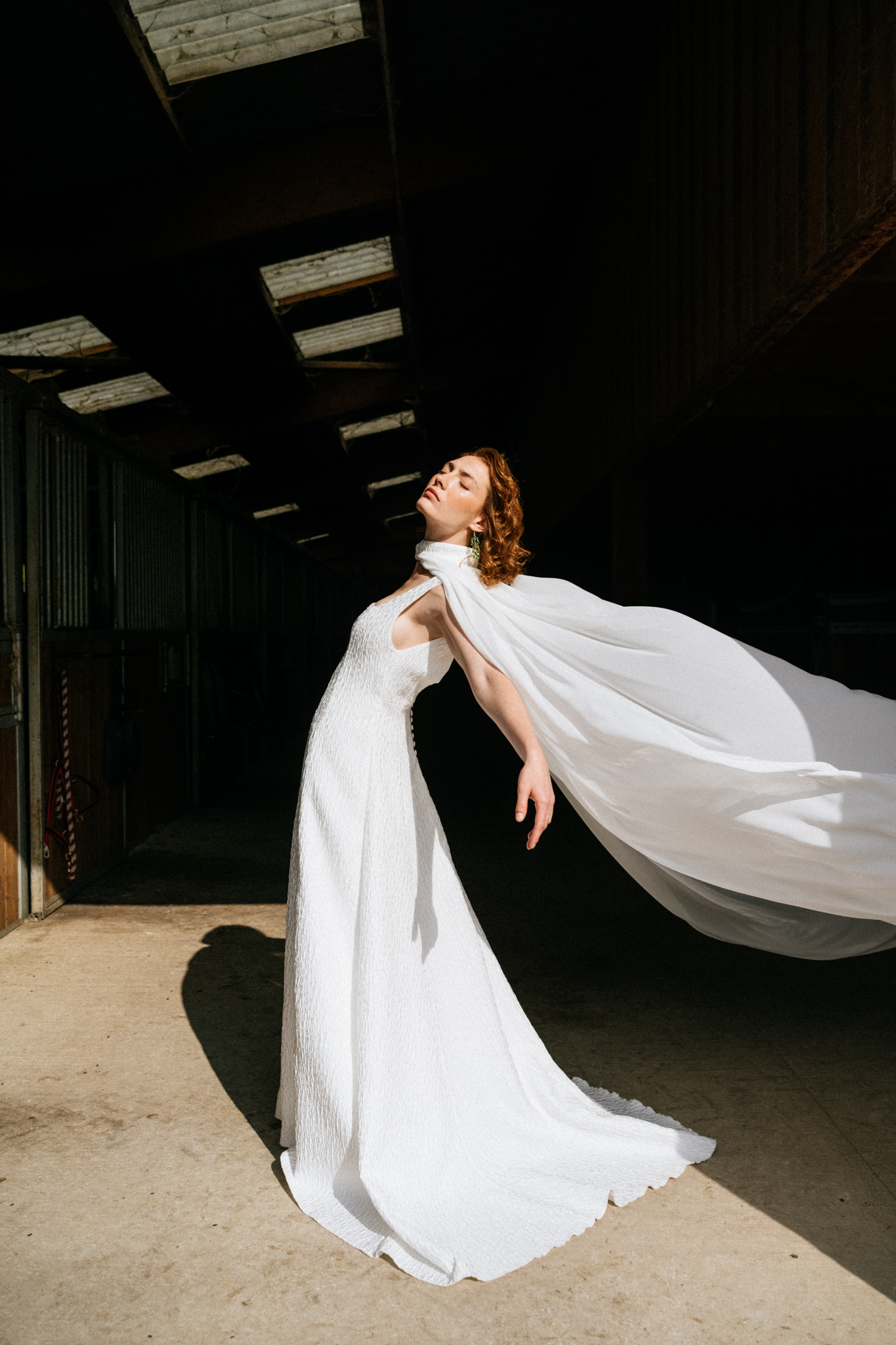 un tombé parfait, une mousseline légère, un hommage à l’indépendance et à la pureté du blanc.